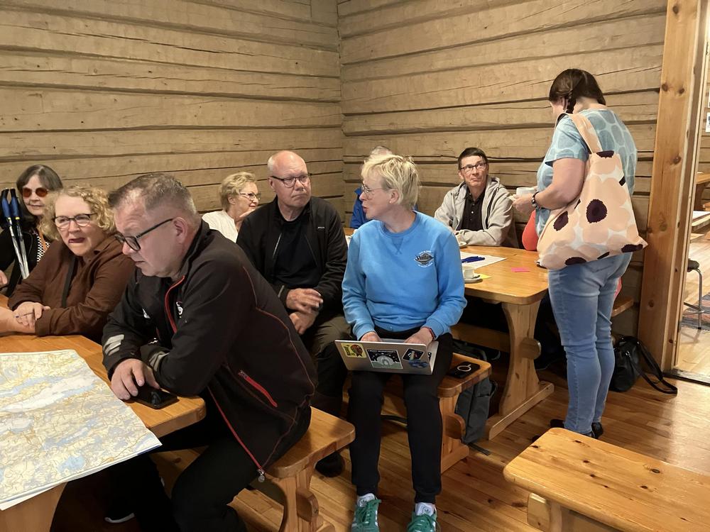 Vesiensuojelusta kiinnostunutta väkeä oli 3.7.2025 runsaasti paikalla. Paljon erilaista tietoa saatiin, kun Maarit Moisio kertoi Pyhäjärvi-hankkeen kuormitusseurannasta, Annika Kiiski (etäyhteydellä) Hiilipörssistä soiden ennallistajana ja Panu Kukkonen Metka-tuesta ja yksityismetsätalouden vesiensuojelutoimenpiteistä.